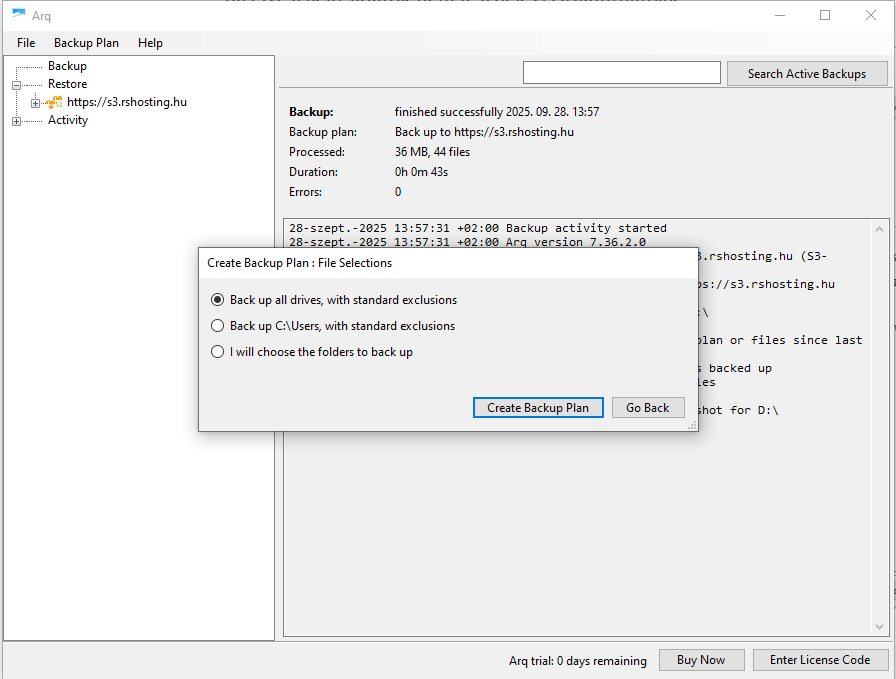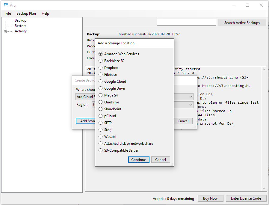 - Arq: legegyszerűbb GUI-s automatikus backup.