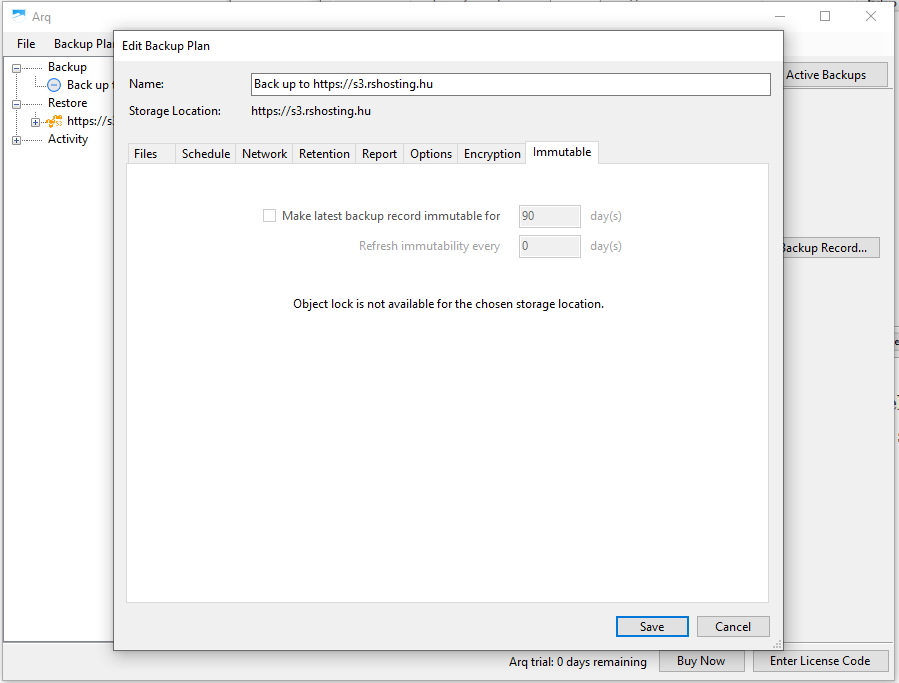 Immunitable fül: ha van a tárhelyen Object lock akkor azt itt tudod beállítani. Csak a nagyobb előfizetésekhez jár.