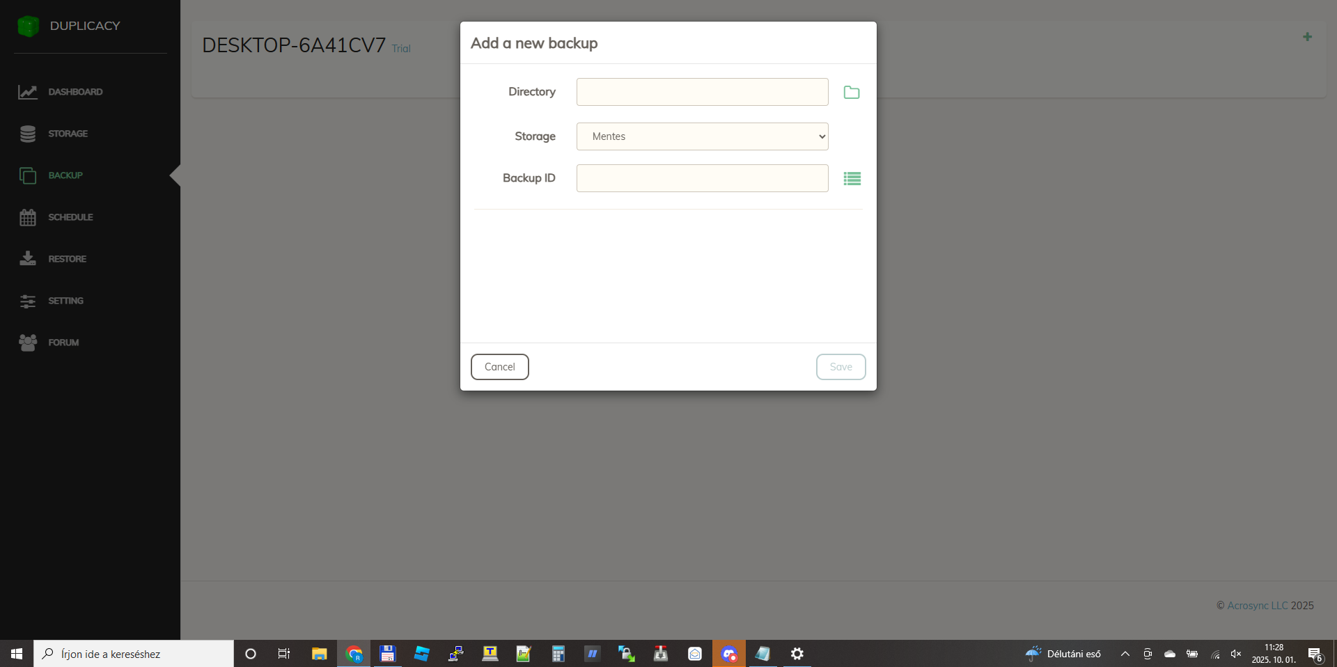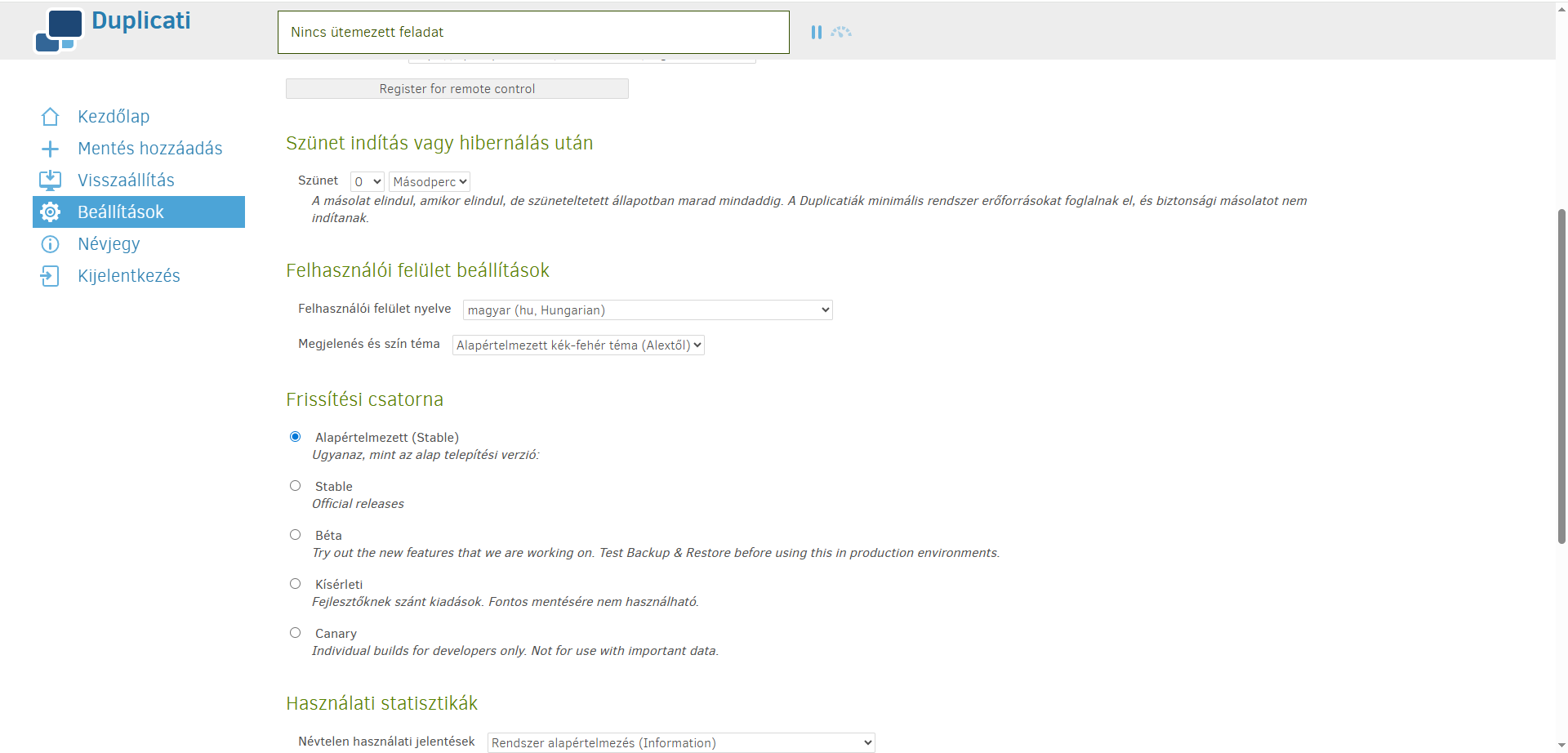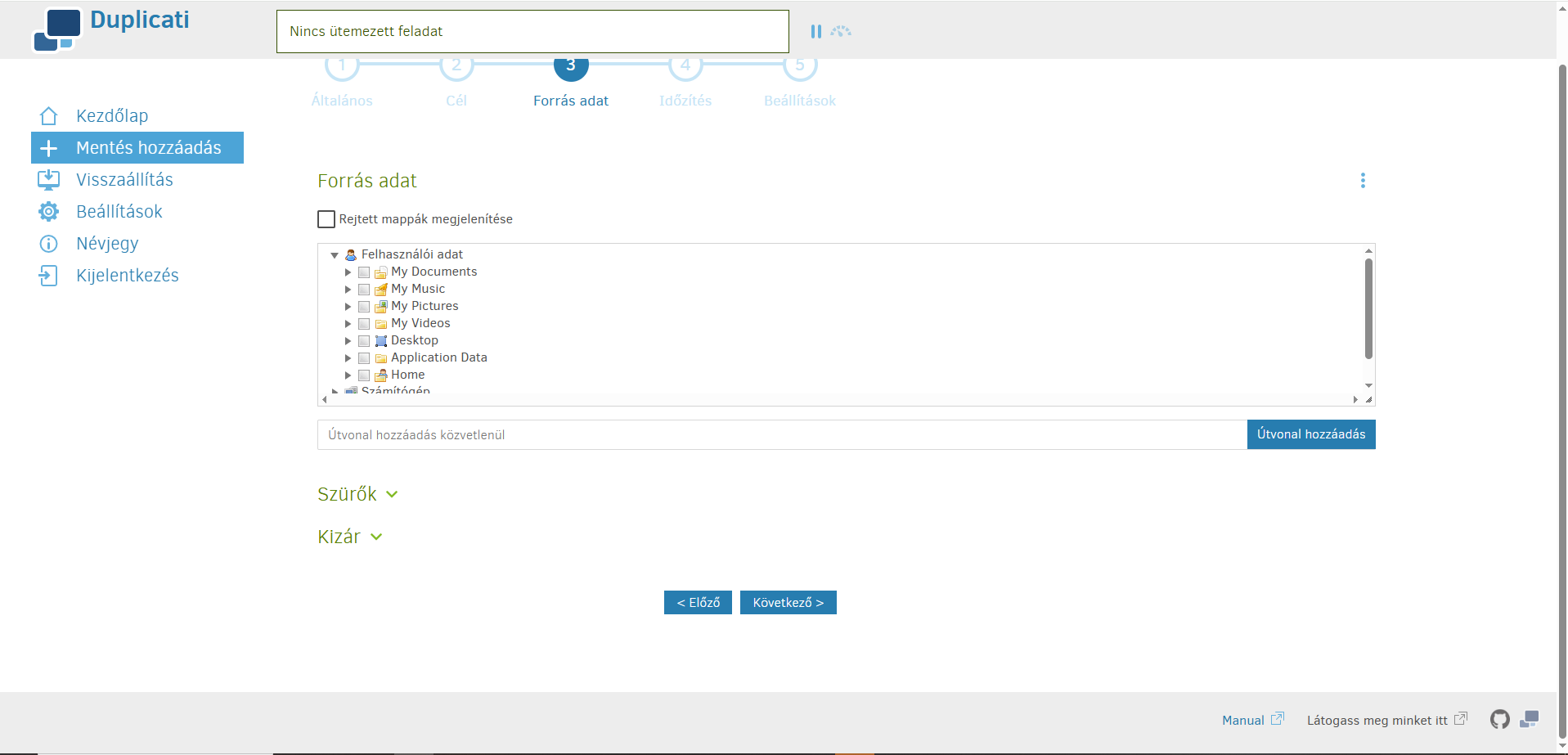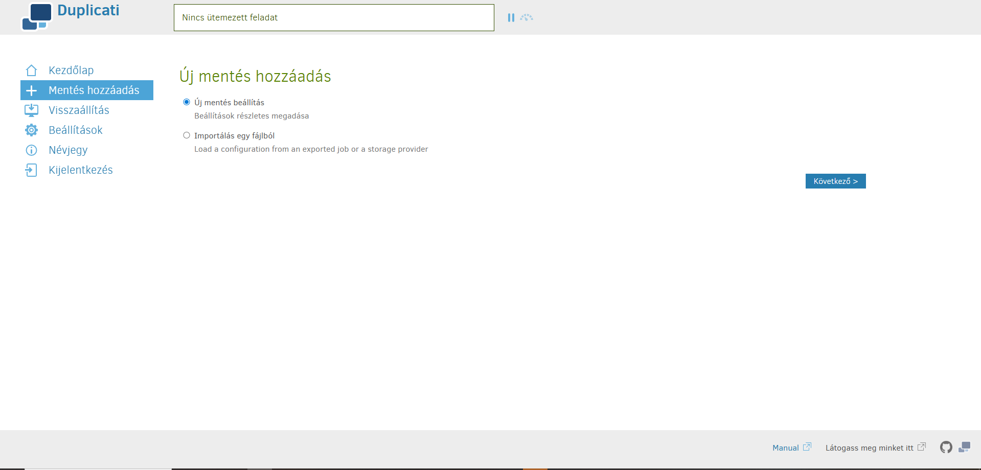 A Duplicati egy böngészőben futó, GUI-s backup kliens.