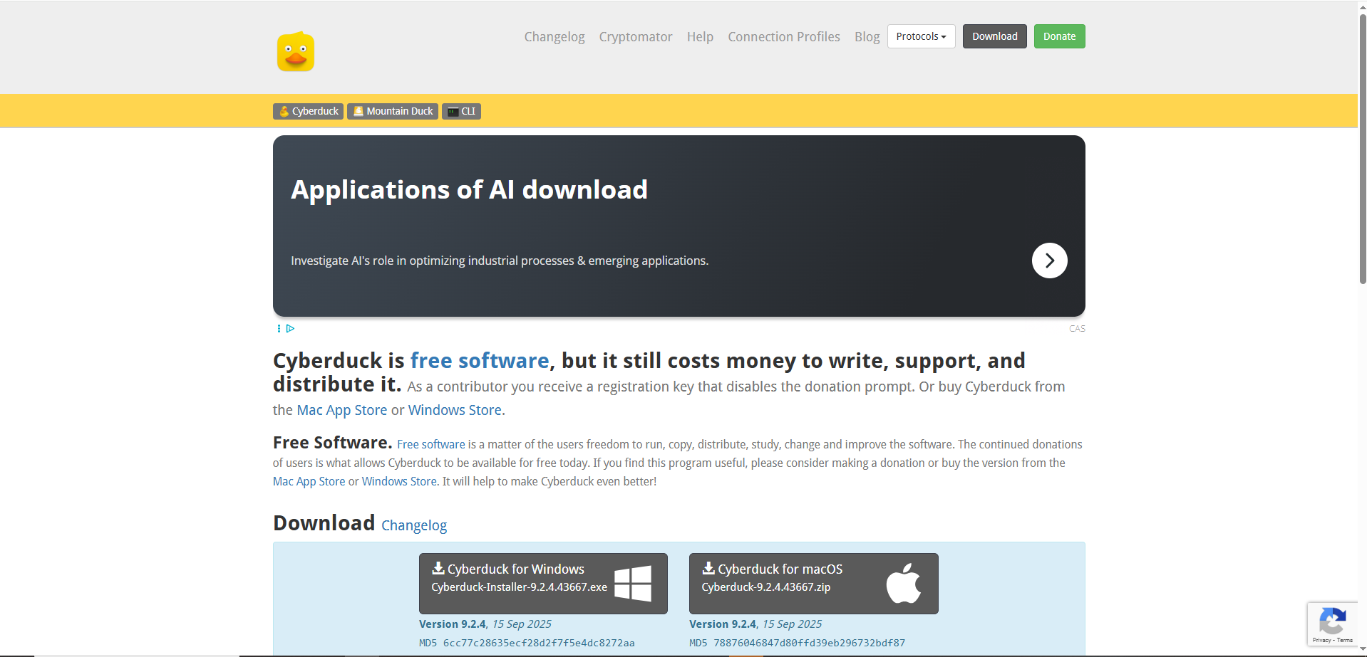 A Cyberduck inkább kézi fájl-feltöltésre/szinkronizálásra alkalmas, nem repository-szerű backupra.
