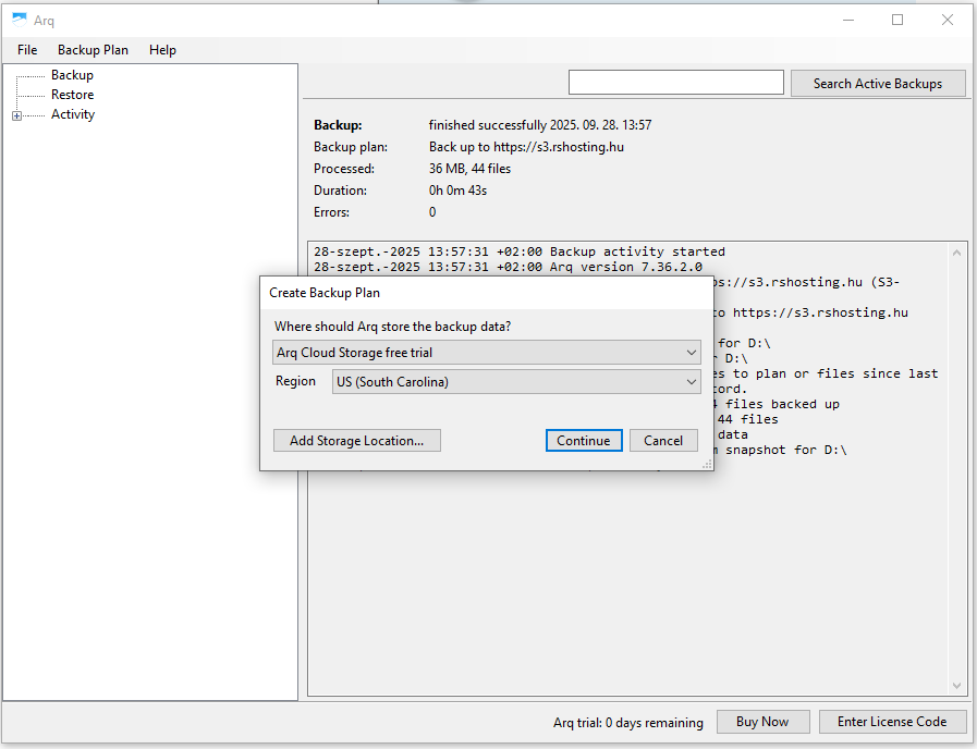 Az Arq fizetős, de nagyon kényelmes backup kliens, ami repository-szerűen tárolja a mentést.
