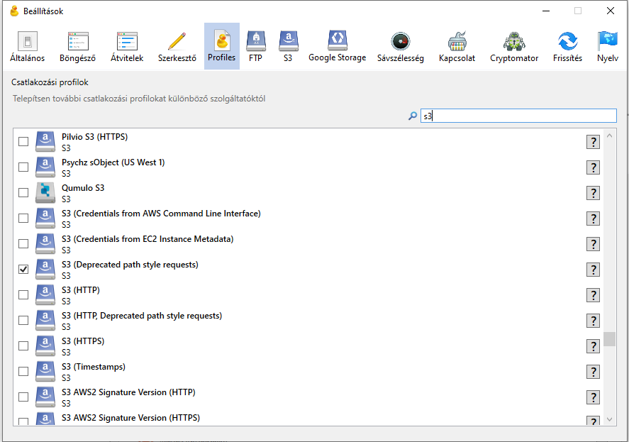Itt keressük meg és pipáljuk be az S3 (Deprecated path style requests)-et