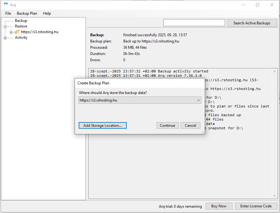 Ezután az Arq automatikusan titkosítva, darabolva tölti fel a fájlokat.