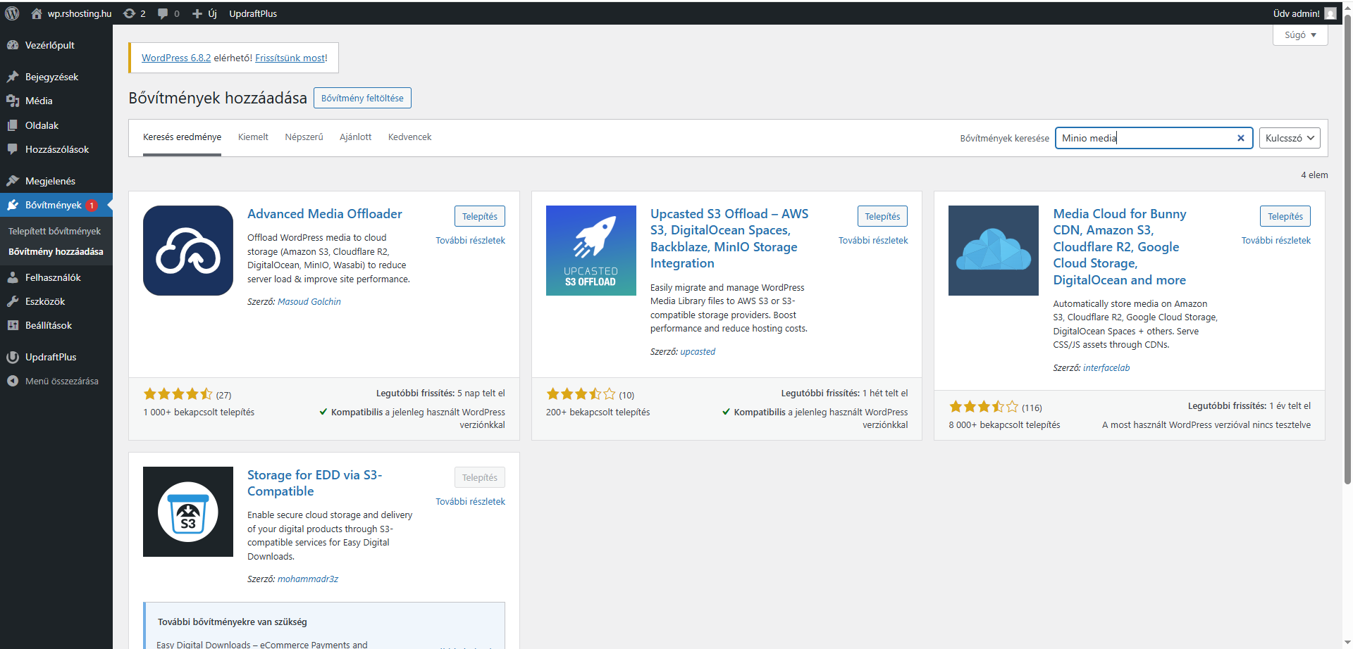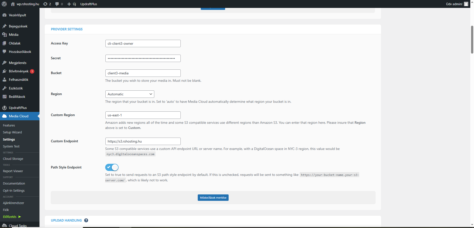 - Media Cloud plugin – összeköti a WordPress-t az S3 tárhellyel.